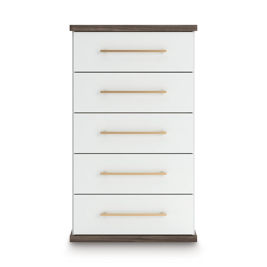 • Two-tone finish (dark brown finish over replicated walnut grain; matte white finish)
