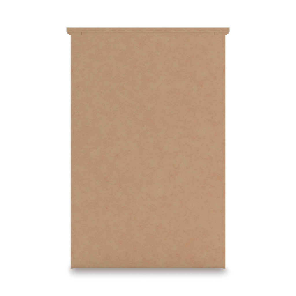 • Drawer interiors are lined with a faux linen laminate for a clean, finished look