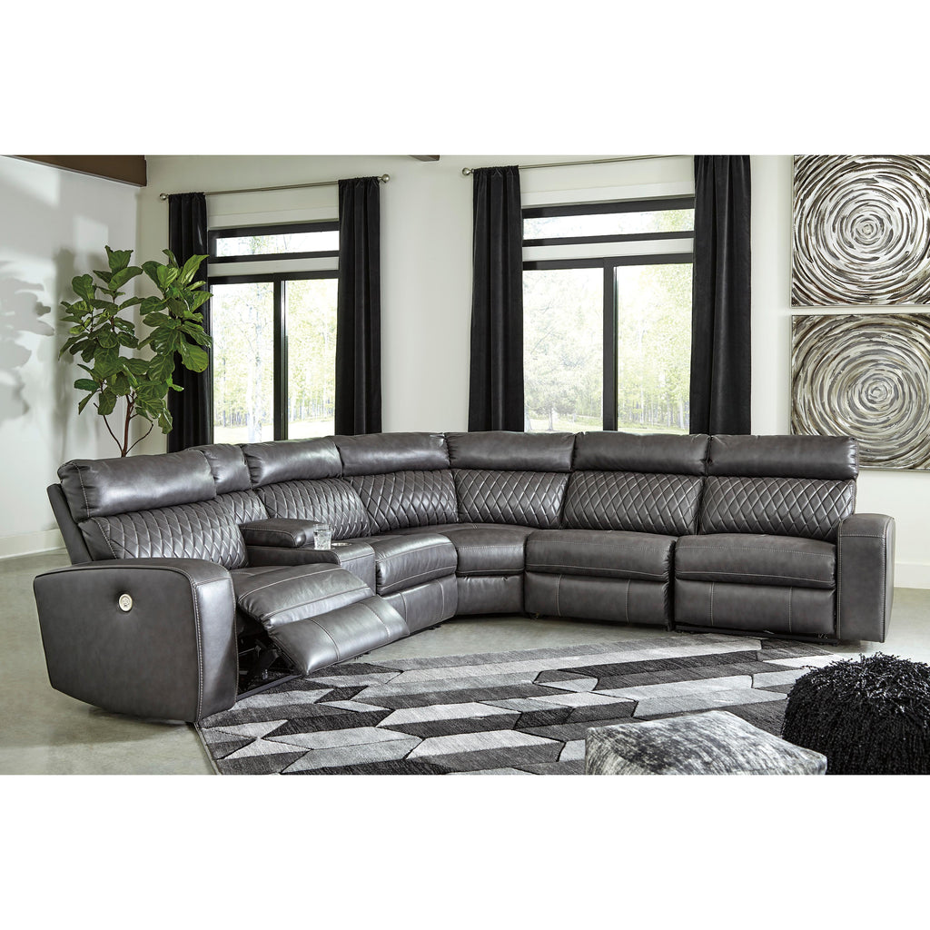 Signature Design by Ashley Samperstone Power Reclining Leather Look 5 pc Sectional 5520358/5520319/5520377/5520346/5520362